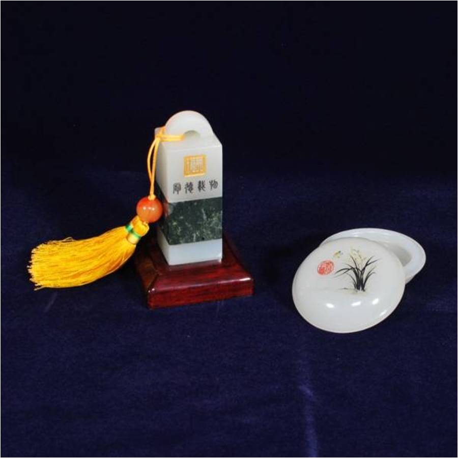 名称:梅花玉印章+印油盒
