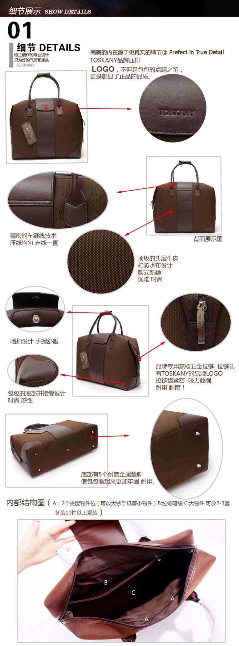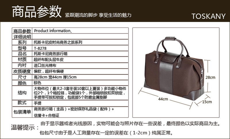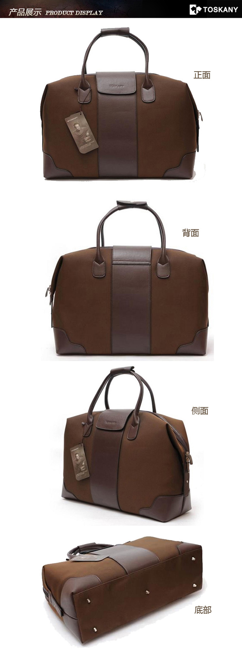 托斯卡尼/TOSKANY 防水布配皮手提旅行包