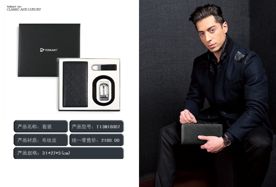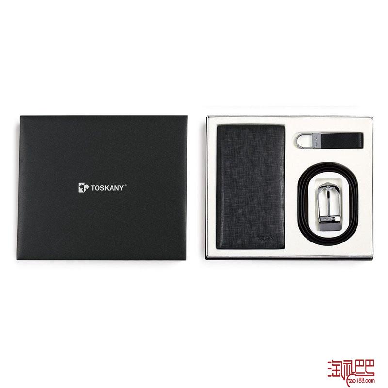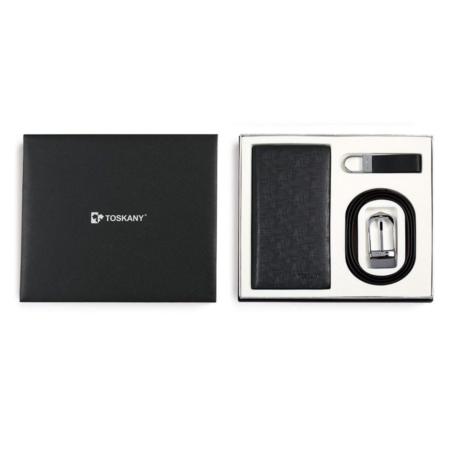 托斯卡尼/TOSKANY 十字纹皮三件套装长夹皮带钥匙环