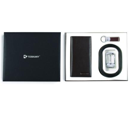 托斯卡尼/TOSKANY 十字纹皮三件套装长夹皮带钥匙环