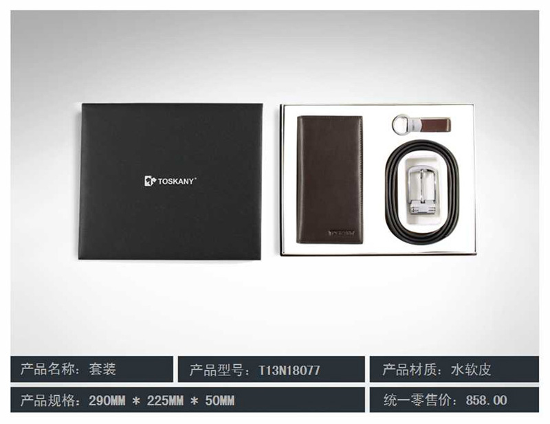 托斯卡尼/TOSKANY 水软皮皮带+皮夹+钥匙扣三件套装