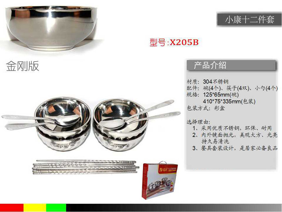 不锈钢小康十二件套餐具 X205B