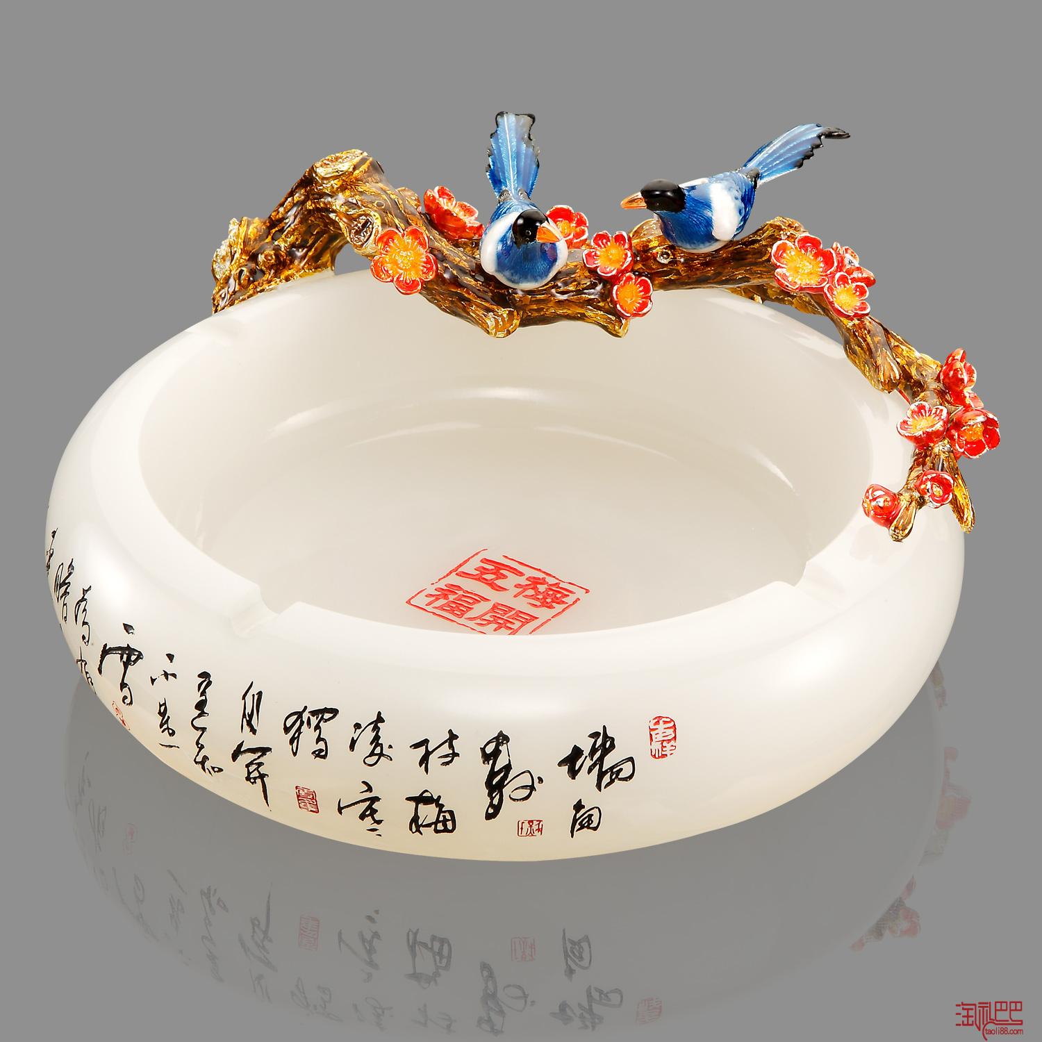 来自琉璃与贵金属珐琅彩工艺的全新演泽,作品以自然而生动,充满情趣的造型艺术,采用精湛的雕刻制作技艺,同时在作品上题刻中国传统的经典诗词歌赋,使作品诗中有画,画中有诗,诗意与作品造型不谋而合同,作品在具有较高的观赏性的同时,又赋于烟缸的实际使用意,这对以往工艺精品往往只局限于观赏而缺乏实用,是一大突破。此作品乃为家居装,商务馈赠之上等佳品!