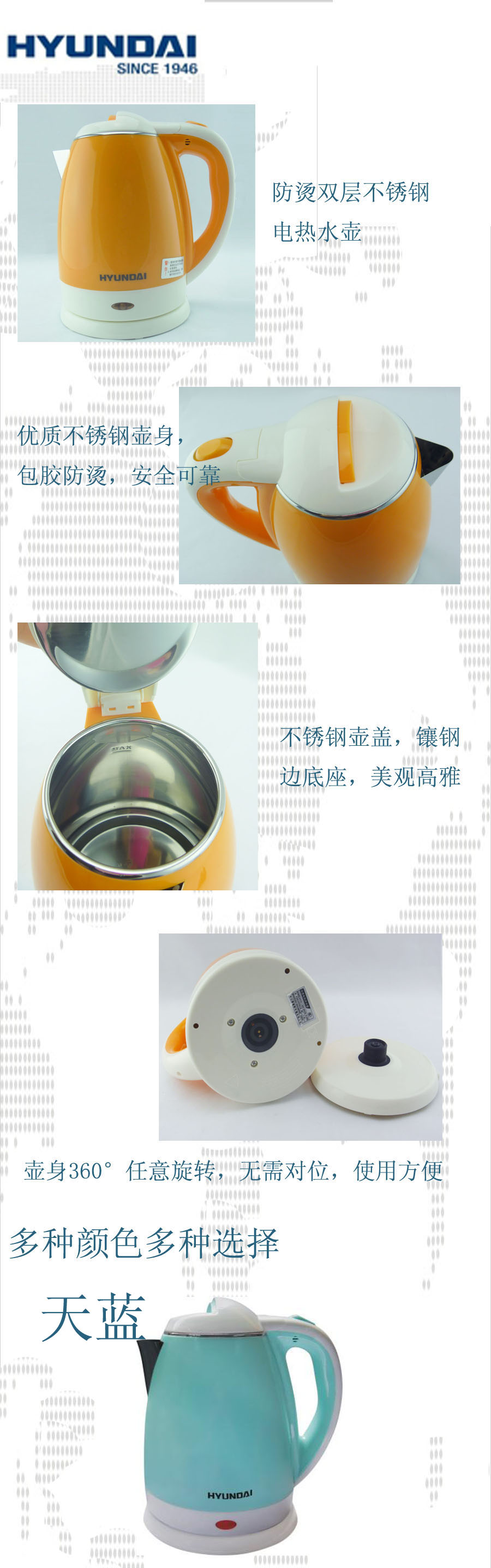 韩国现代 防烫双层不锈钢电热水壶HD-522