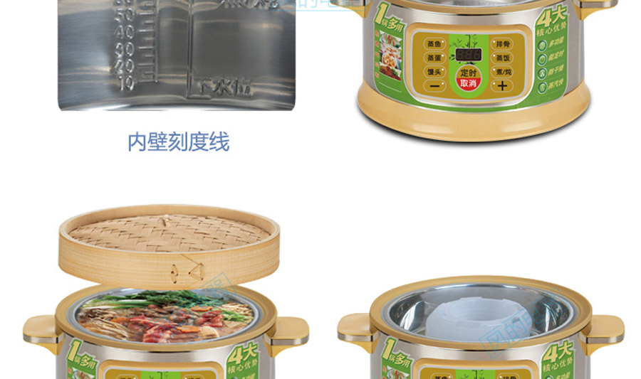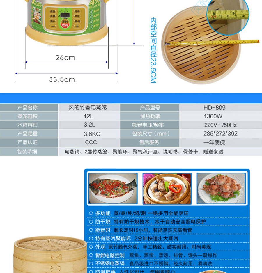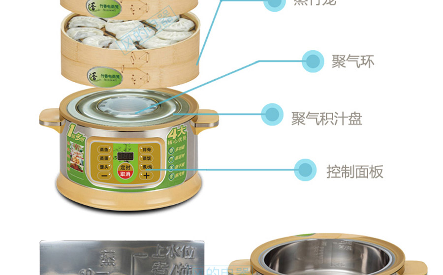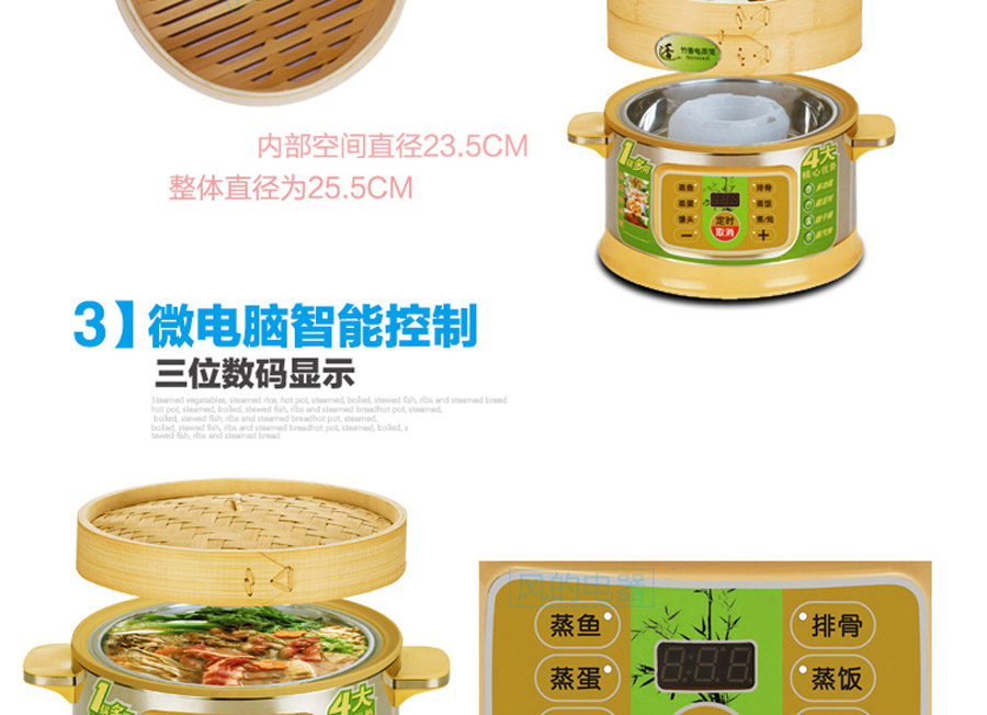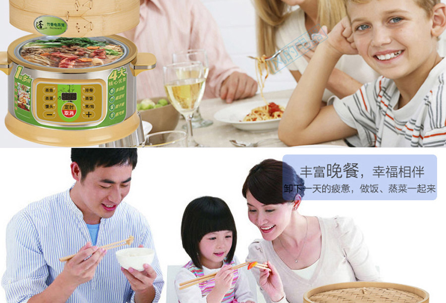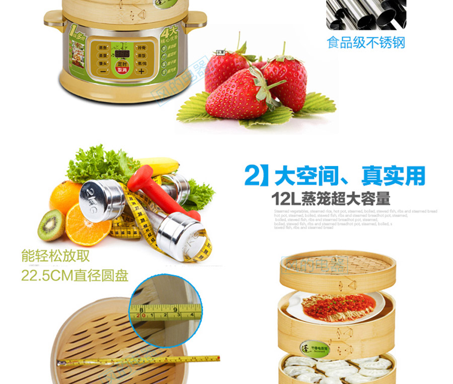 竹香电蒸笼电蒸锅多功能7L双层三层多层蒸煮笼小家电