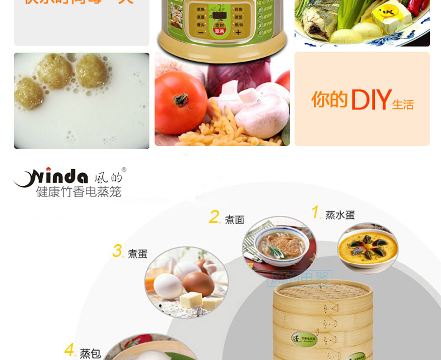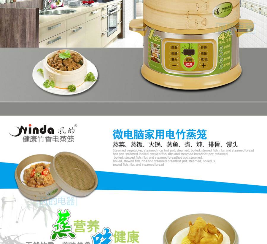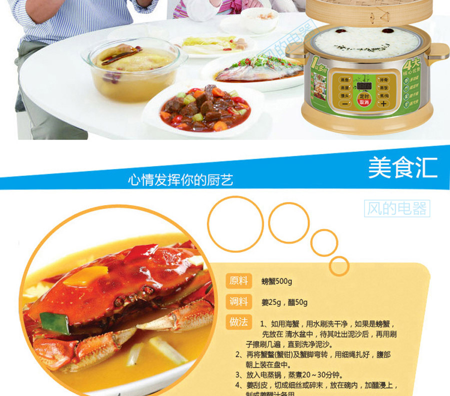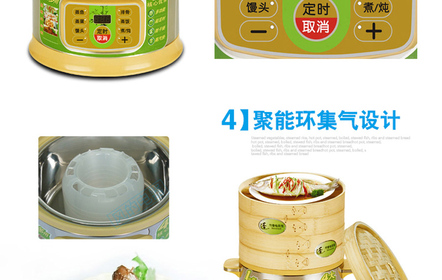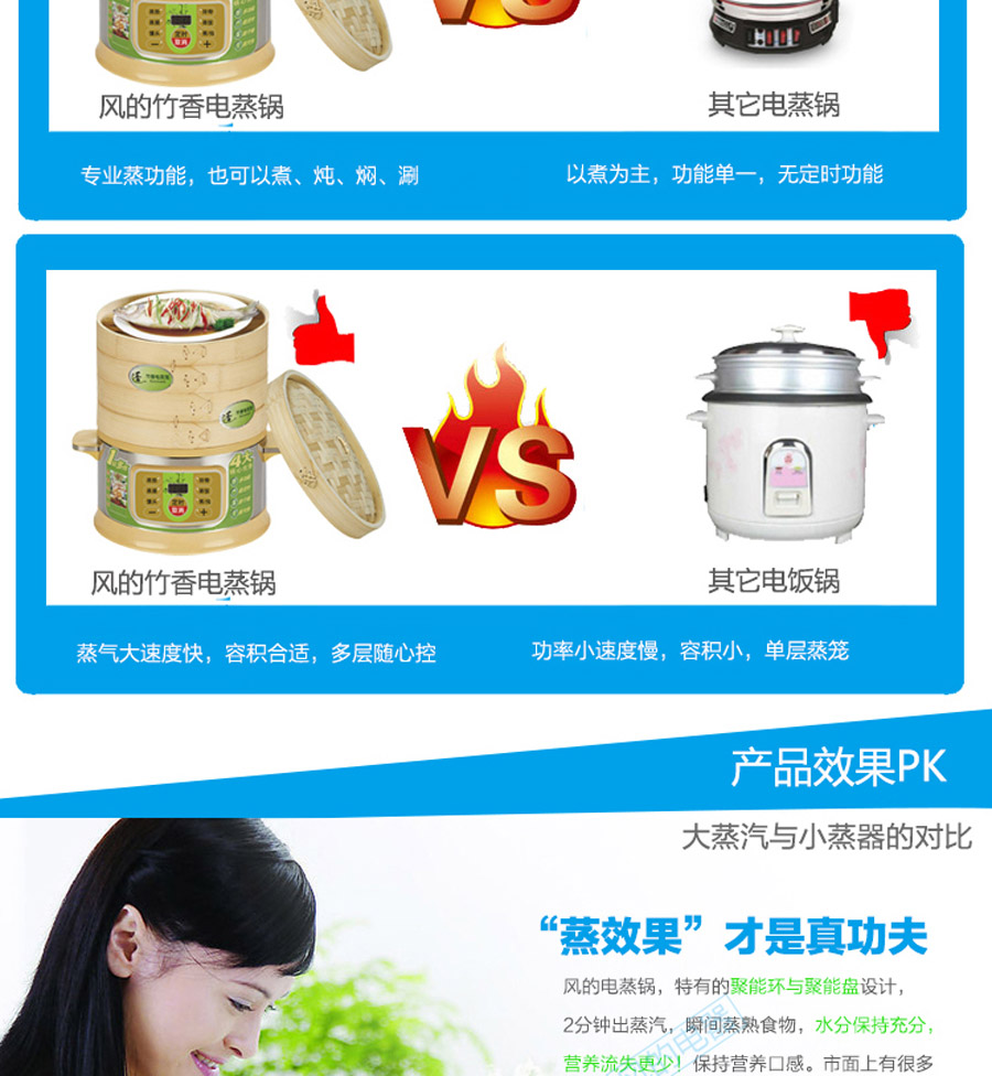 竹香电蒸笼电蒸锅多功能7L双层三层多层蒸煮笼小家电