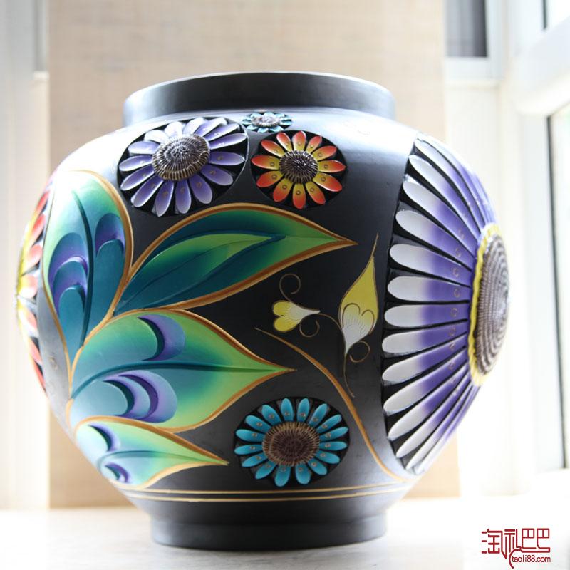 大罐 沐浴阳光 云南本土黑陶工艺 茶叶罐 工艺摆件