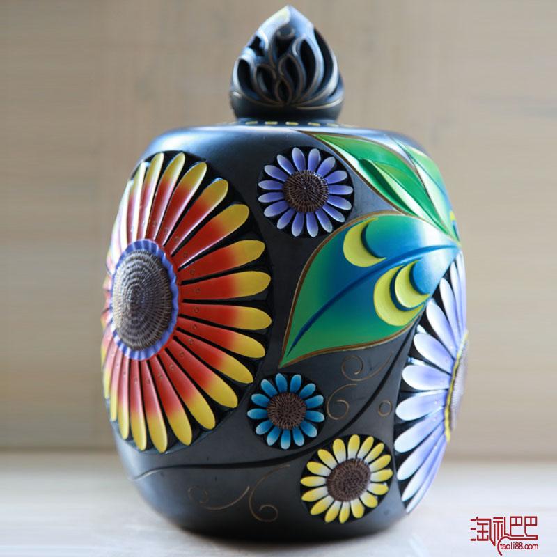 欣欣向荣 黑陶茶叶罐 云南特产 家居办公摆件