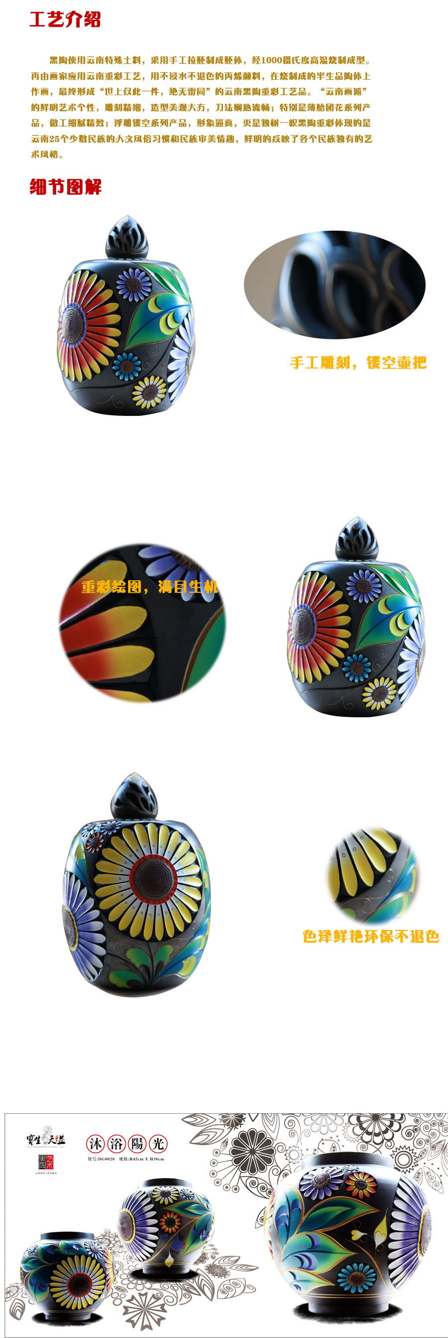 大罐 沐浴阳光 云南本土黑陶工艺 茶叶罐 工艺摆件