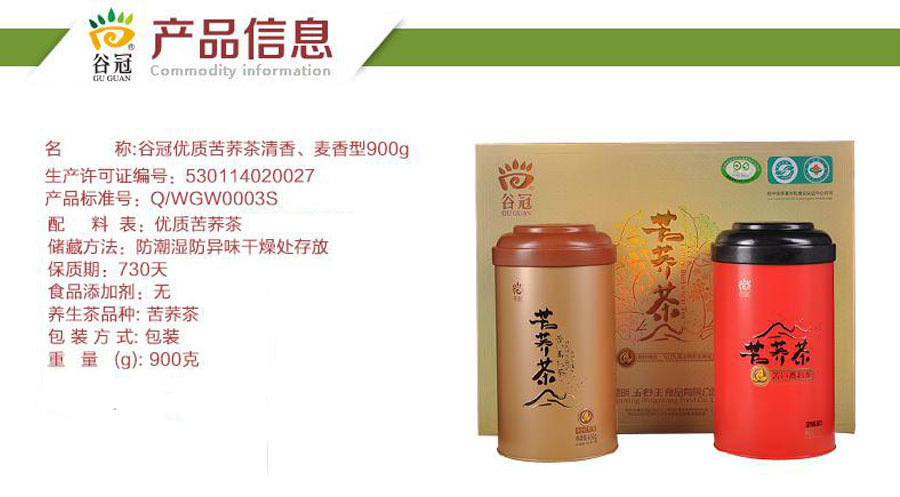 谷冠优质苦荞茶 清香型、麦香型900g