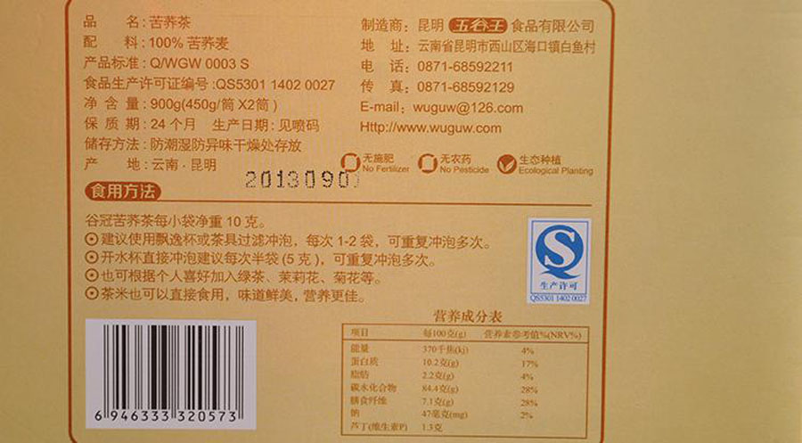 配料:优质苦荞